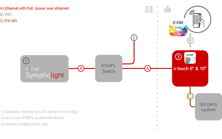 Touch screen for integrating user interaction into your control system via e:cue’s SymphoTouch application.