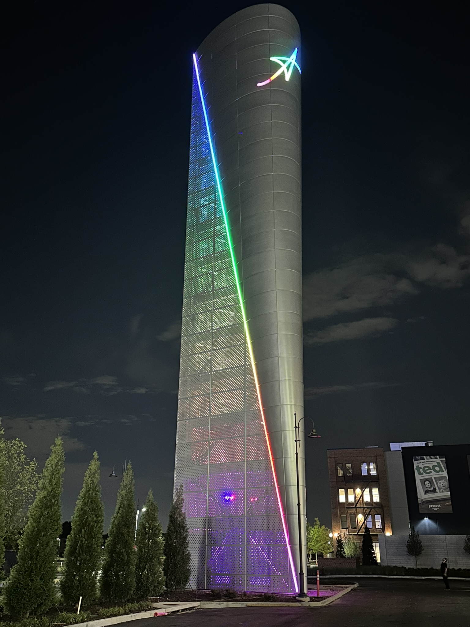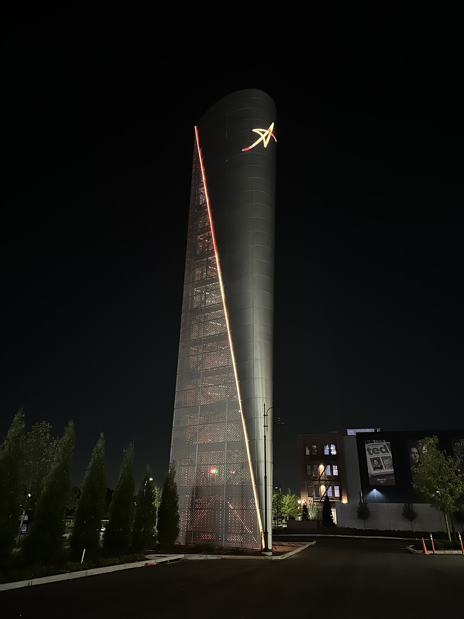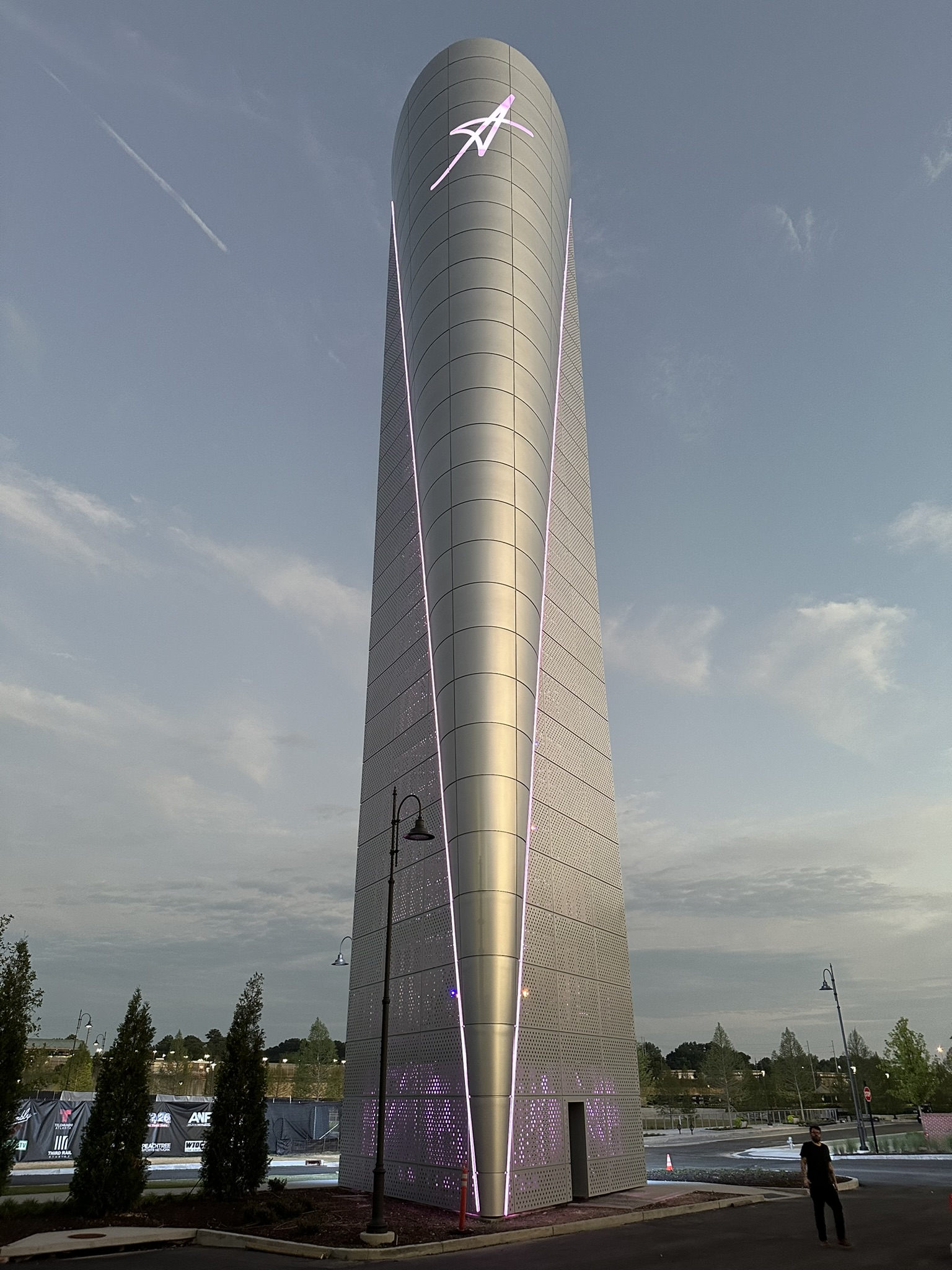 Visible from Interstate 285, the tower acts as a beacon for Assembly Atlanta, regularly playing light shows for holidays, Atlanta sports teams, and community causes.
