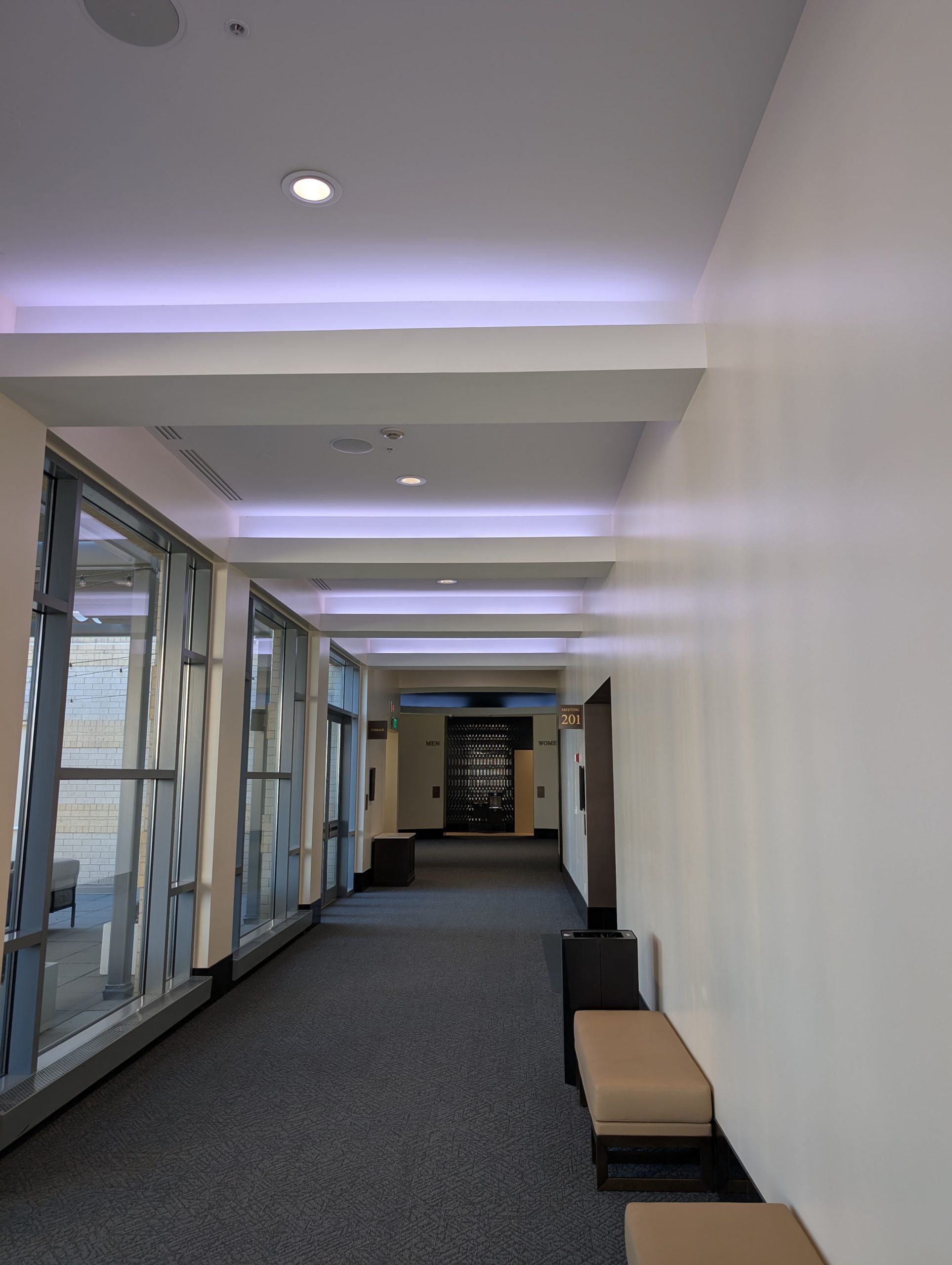 In early 2024, a $20 million renovation kicked off with the goal of modernizing the space – including updated flooring, technology, furniture, and LED cove lighting from Traxon. Our Cove Light Plus RGBW is used throughout ballroom and circulation spaces to provide ambient color for conferences, meetings and events alike.